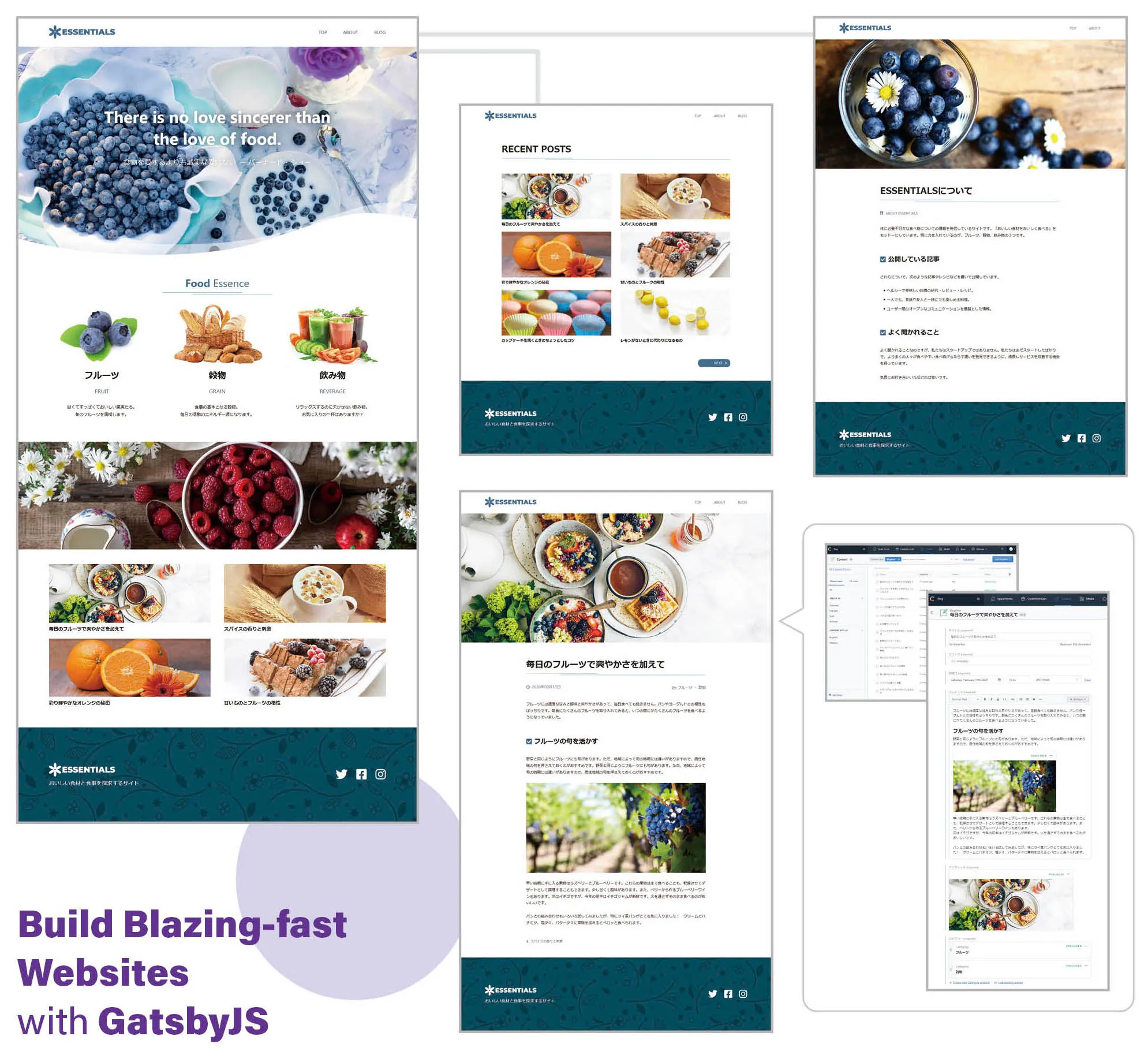 作成していくサンプルはこんなサイト( https://gatsby-essentials.netlify.app/ )です。