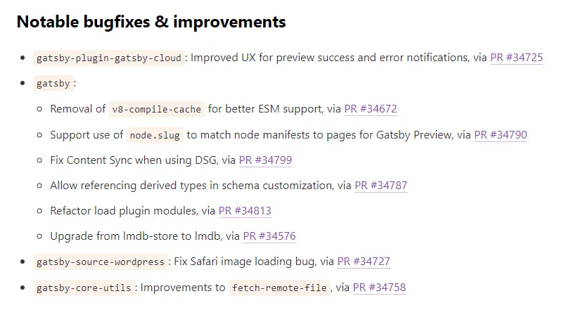 <script type="module"> const t = "undefined" != typeof HTMLImageElement && "loading" in HTMLImageElement.prototype if (t) { const t = document.querySelectorAll("img[data-main-image]") for (let e of t) { e.dataset.src && (e.setAttribute("src", e.dataset.src), e.removeAttribute("data-src")), e.dataset.srcset && (e.setAttribute("srcset", e.dataset.srcset), e.removeAttribute("data-srcset")) const t = e.parentNode.querySelectorAll("source[data-srcset]") for (let e of t) e.setAttribute("srcset", e.dataset.srcset), e.remove Attribute("data-srcset") e.complete && (e.style.opacity = 1) } }</script>もともと、gatsby-source-wordpressの画像はGatsbyImage相当の独自の実装でしたが、v6からさらに新しくなったようです。