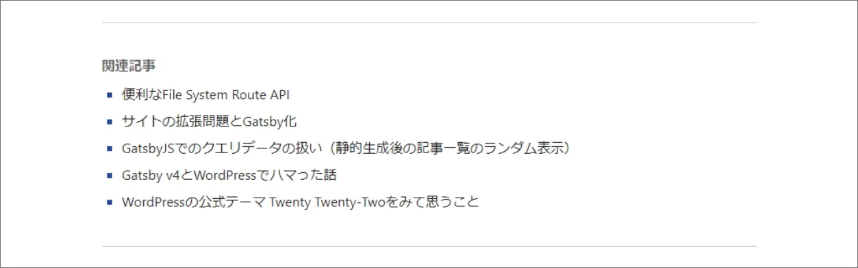 そこで、形態素解析の一連の処理を、Gatsbyのライフサイクルから追い出してしまうとともに、関連記事の表示も組み込んでみました。