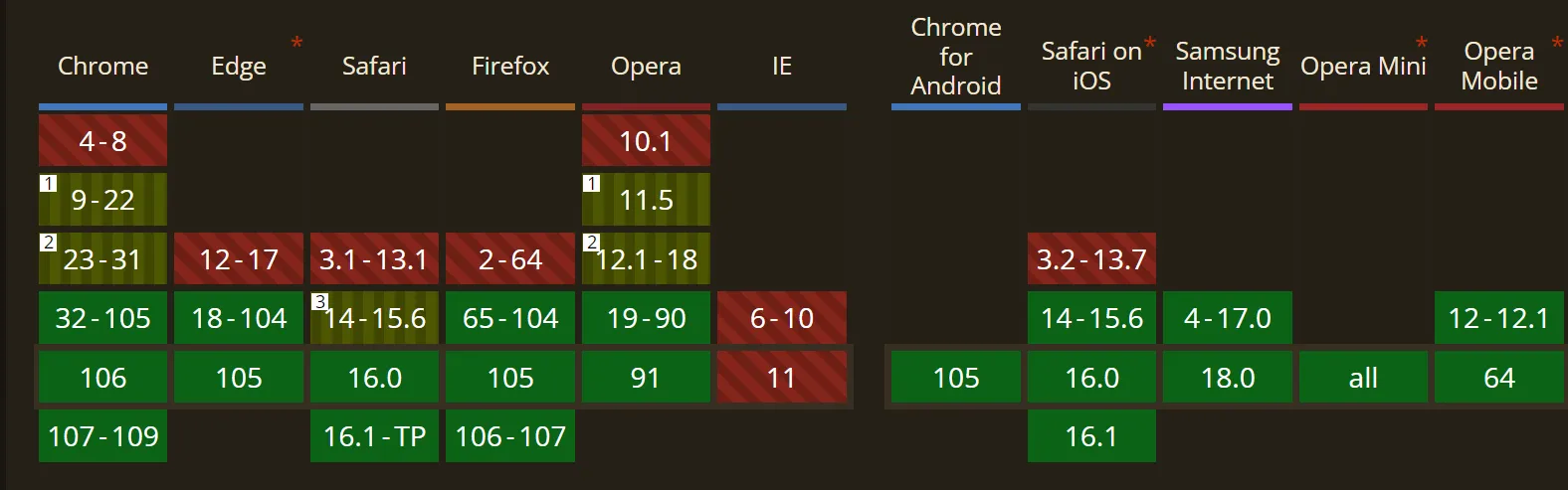 ここで、各ブラウザのWebPへ対応状況を確認してみます。