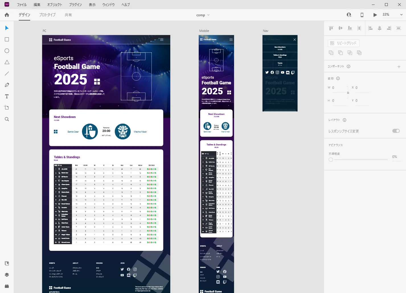 表として取り扱うデータを何にするかが問題となりましたが、スタンダードに順位表としました。そこから、今回のeSportsをイメージしたページのデザインとカンプができあがっています。
